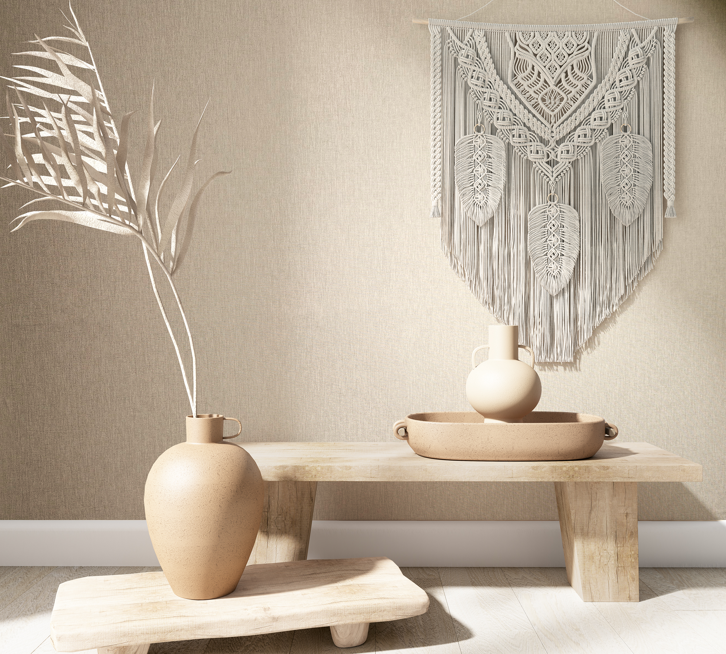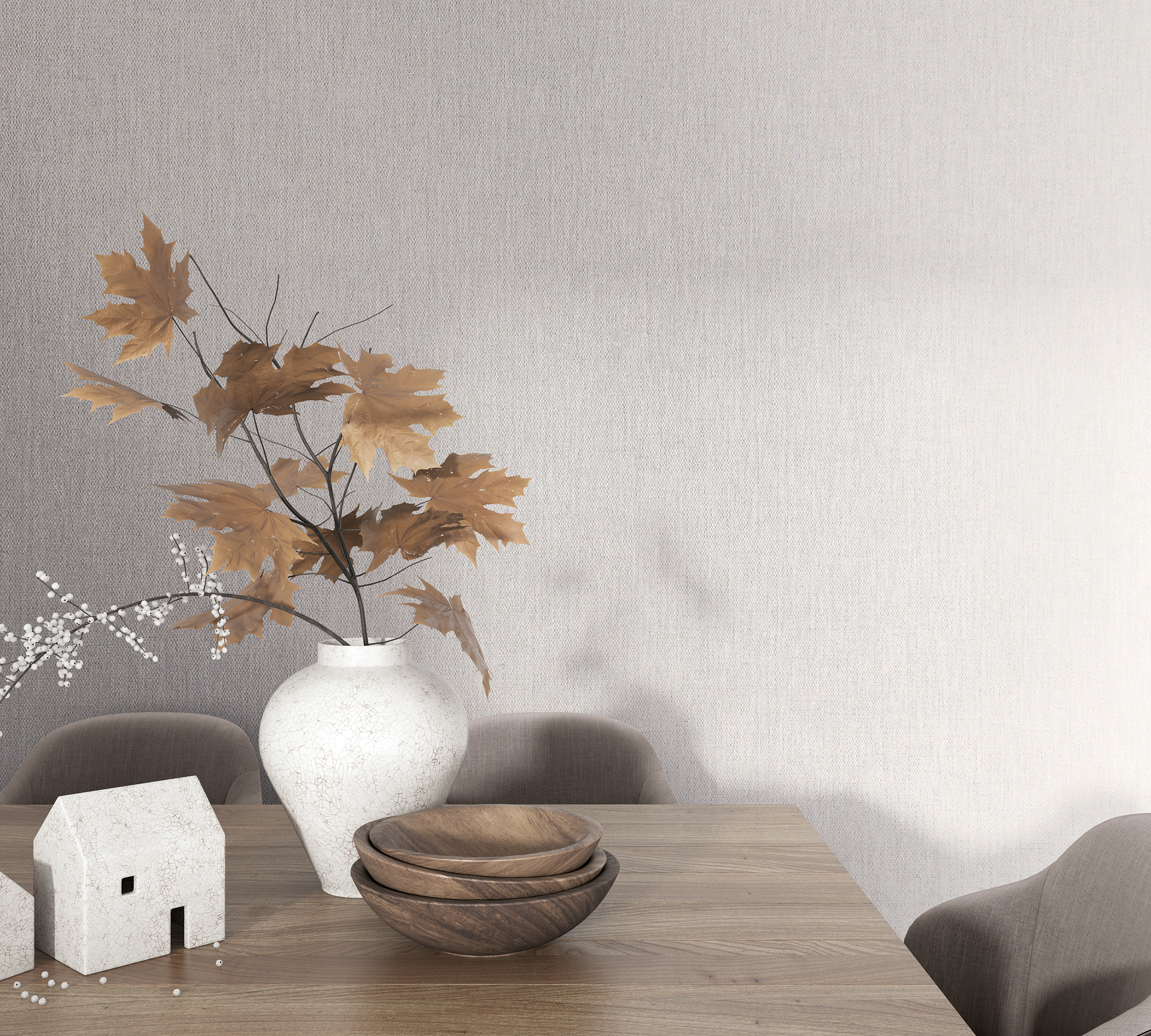 Коллекция идеально подойдёт для современных минималистичных пространств, скандинавских интерьеров, мягкого japandi, эко-стиля, спокойной современной классики и даже лаконичного лофта с акцентом на природные материалы. Эти обои легко сочетаются с деревом, камнем, текстилем, керамикой и металлом, подчёркивая архитектуру пространства и формы мебели.