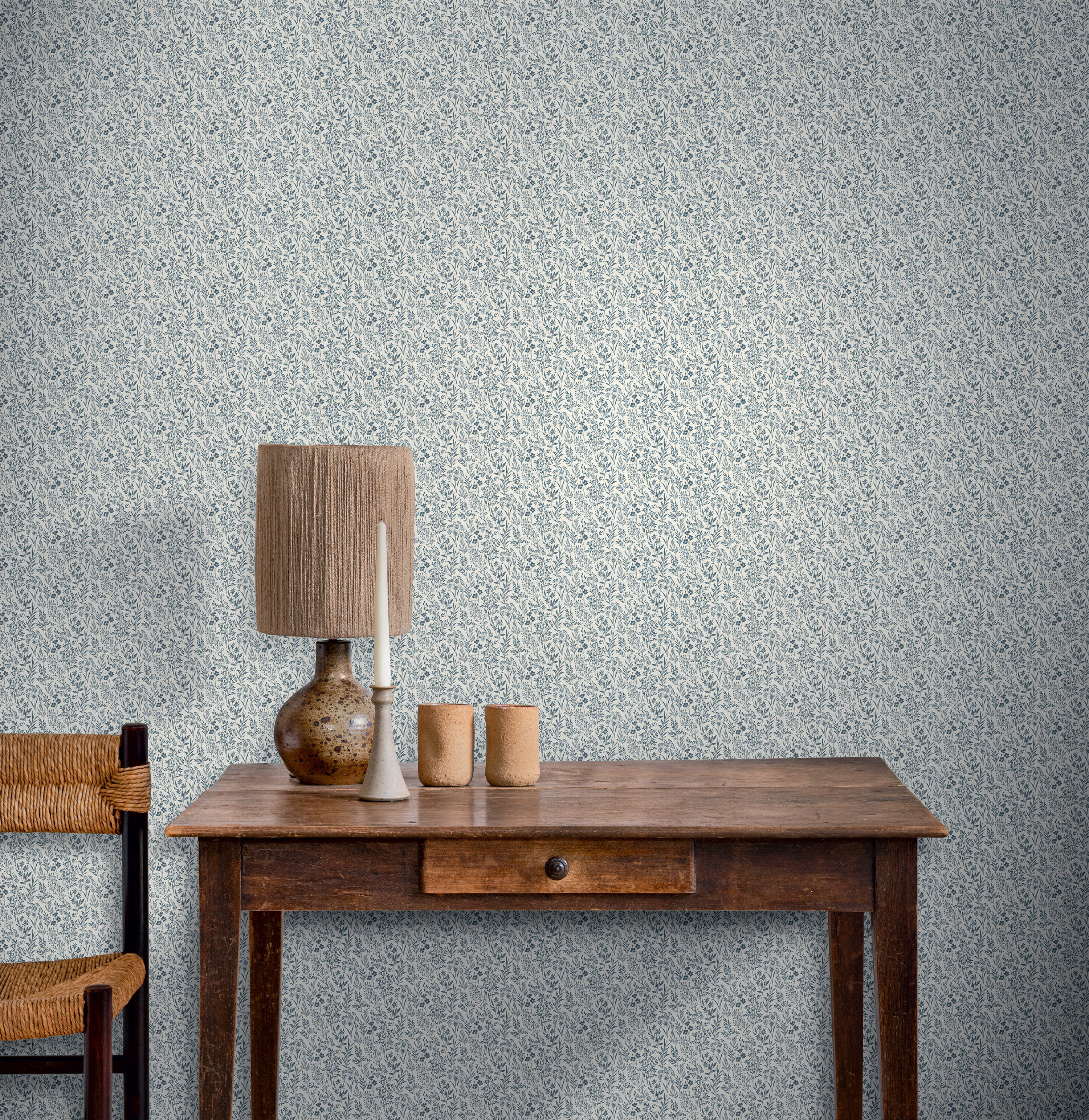 Лёгкие акварельные листья и нежные лепестки Vivien танцуют на фактурном фоне, словно колышутся от лёгкого ветра. Их мягкие голубые и бежевые оттенки создают атмосферу естественной элегантности, которая успокаивает и вдохновляет.