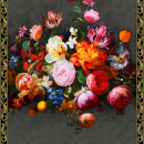 - Реалистично изображенные средиземноморские фрукты на разных фонах, включая насыщенный черный, который подчеркивает яркие цвета отдельных фруктовых мотивов.