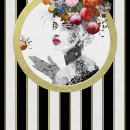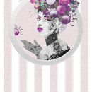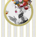 - Панно в трех цветовых сочетаниях с ярким дизайном черно-белого женского портрета, увенчанного красочным букетом в золотой раме. Компаньонами к сету выступают обои с традиционной широкой полосой.