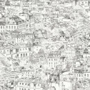 Рисунок архитектуры города непременно будет привлекать внимание и на нем захочется рассматривать каждую деталь. Такой дизайн также хорошо подойдет для любого помещения и отлично будет выделять функциональную зону, если его использовать в сочетании с однотонным покрытием.