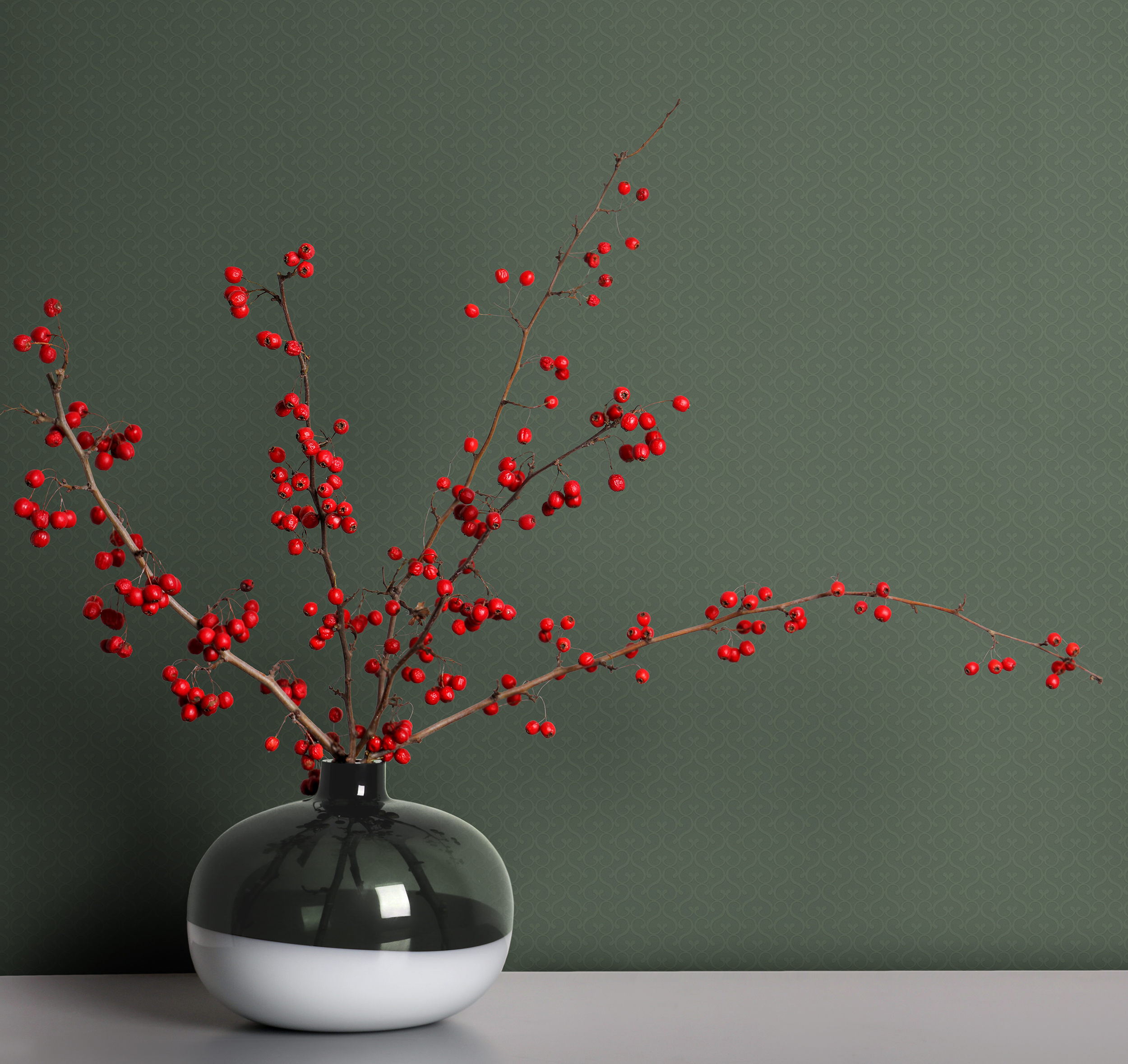 Интерпретация мотива «Мезен», вдохновленная древней росписью по дереву, приобрела особую выразительность в обоях. Благородная матовая текстура подчёркивает линии орнамента, словно отсылая к старинным техникам, где краски впитывались в поверхность и сохраняли её естественную красоту. Эта стилизация органично соединяет в себе древность и современность, легко сочетаясь с другими мотивами коллекции – Хохломой, Мазаницей и Басой.