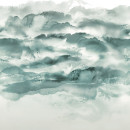 Мягкие силуэты зелёных холмов, растворяющиеся в тумане, словно отражаются в воде. Полупрозрачные слои краски создают ощущение бесконечности и покоя, напоминая о моментах тишины и душевной гармонии. Спокойная серо-зелёная и дымчатая палитра с лёгкими холодными нюансами создает эффект свежести и утренней пелены.