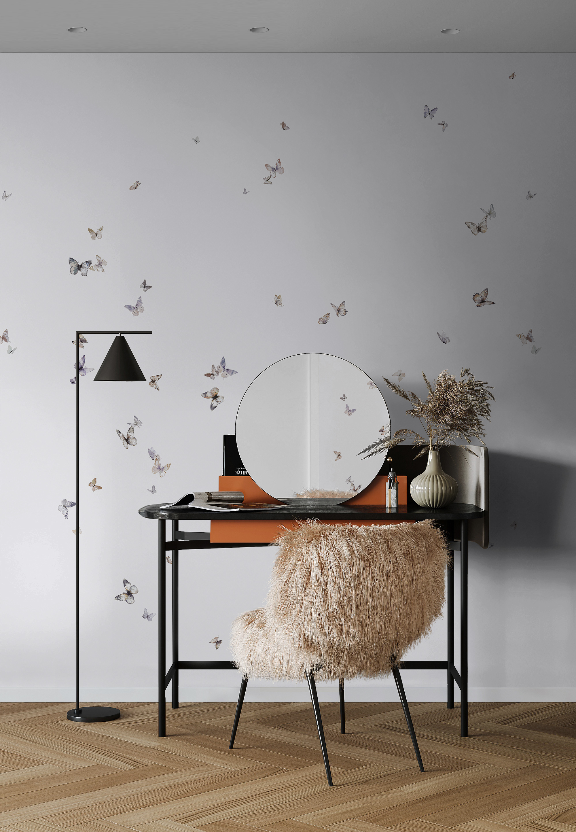 Минималистичный и поэтичный сюжет: лёгкие бабочки парят в пространстве, оставляя за собой едва заметный след движения. Идеальный выбор для интерьеров, где ценят свет, свободу и изящество. Нежная палитра айвори, пудровых и пастельных переливов гаммы, подчёркивает хрупкость и эфирность композиции.