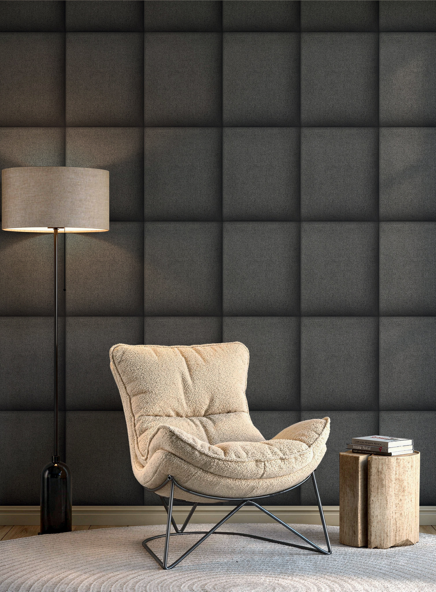 Особое внимание привлекает крупная 3D-геометрия — выразительная, но при этом сбалансированная. Объёмные формы играют со светом и тенью, создавая эффект глубины и архитектурного рельефа. Такой дизайн становится акцентом, который задаёт настроение всему пространству.