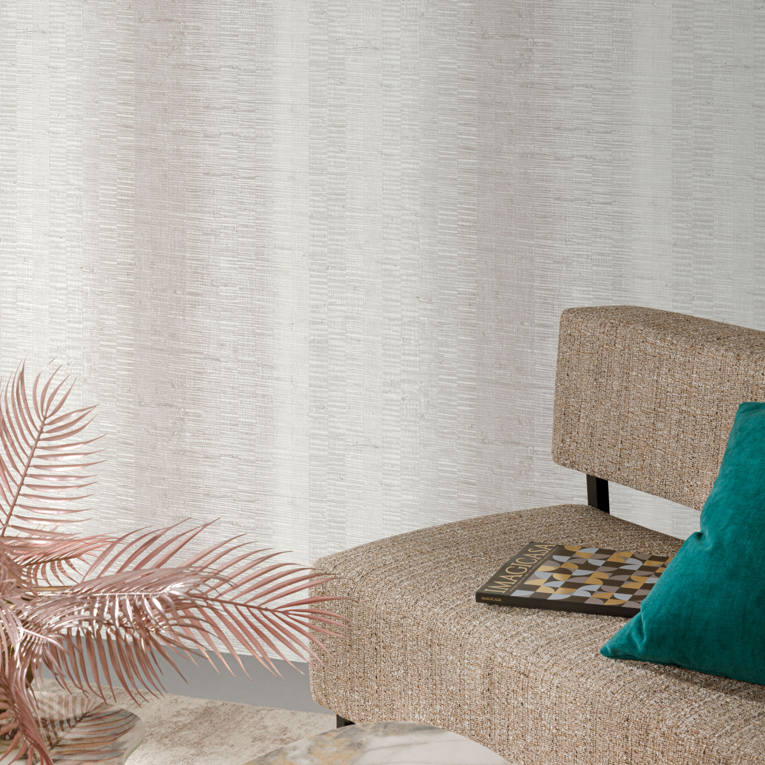 Фоновые дизайны продолжают эту идею тактильного комфорта. Текстуры с эффектом ткани или тонкой штукатурки выглядят спокойно и благородно, становясь идеальным фоном для мебели, света и декора. Они легко комбинируются с акцентными мотивами, позволяя выстраивать интерьер в едином ритме — от полностью нейтрального до выразительного, но всегда гармоничного.